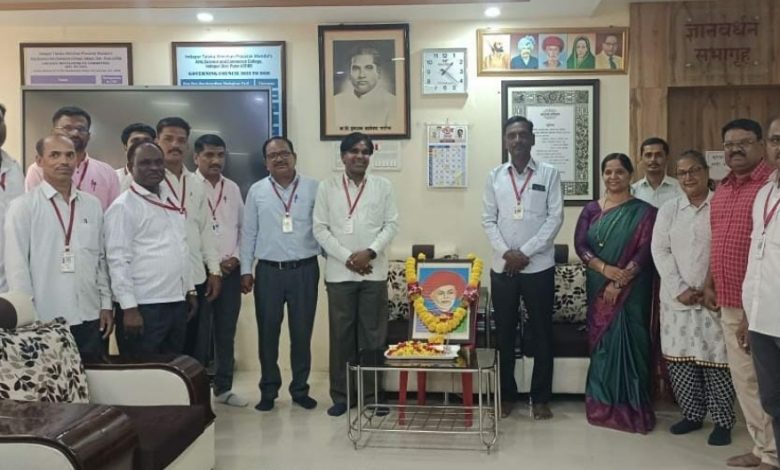 महाविद्यालयाचे प्राचार्य डॉ. जीवन सरवदे ,उपप्राचार्य प्रा. दत्तात्रय गोळे यांनी प्रतिमा पूजन करून त्यांना अभिवादन केले.