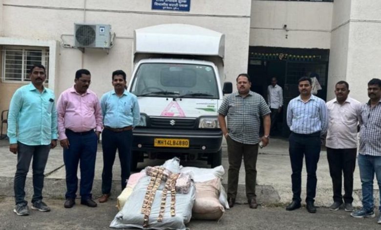पुणे : पुणे विभागाच्या राज्य उत्पादन शुल्क विभागीय भरारी पथकाच्यावतीने करण्यात आलेल्या कारवाईत आंबेगाव तालुक्यात मंचर गावचे हद्दीत चाकण रोडवरील पेट्रोल पंपासमोर चविष्ठ ढाब्याजवळ, भोरवाडी येथे वाहनाची तपासणी केली असता वाहनातून परराज्यनिर्मीत असलेला भांग मिश्रीत पदार्थाच्या वाहनासह एकूण ९ लाख ५ हजार रुपये किमतीचा मुद्देमाल जप्त करण्यात आला आहे, अशी माहिती राज्य उत्पादन शुल्क पुणे विभागाचे विभागीय उपायुक्त सागर धोमकर यांनी दिली आहे.