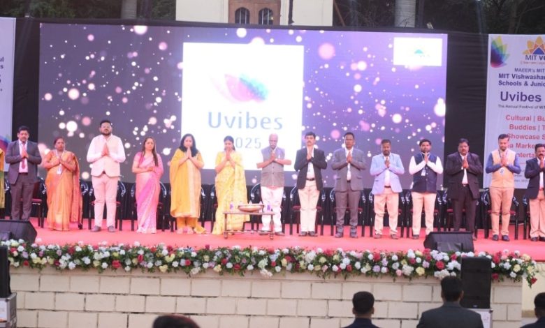 लोणी काळभोर (पुणे) : माईर्स एमआयटी विश्वशांती गुरुकुल स्कूल व ज्युनियर कॉलेजचा वार्षिक सांस्कृतिक व क्रीडा महोत्सव ‘यू-व्हाईब्स २०२५’ अत्यंत जल्लोषात पार पडला. एमआयटी ज्युनियर कॉलेजच्या कोथरूड, लोणी काळभोर, आळंदी, तळेगाव, सोलापूर, पंढरपूर, बार्शी, सांगली आणि चिचोंडी या नऊ कॅम्पसमधून आलेल्या विद्यार्थ्यांनी कला, क्रीडा व सर्जनशीलतेचा अफलातून मेळ घालत दोन दिवस कॉलेज परिसर रंगतदार केला.
