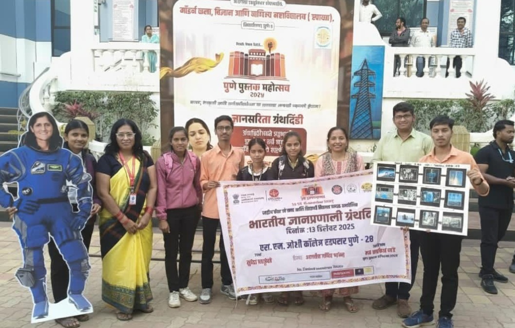 हडपसर (पुणे) : दि. १३ डिसेंबर २०२५ शिक्षण मंत्रालय, भारत सरकार व सावित्रीबाई फुले पुणे विद्यापीठ यांच्या संयुक्त विद्यमाने आयोजित पुणे पुस्तक महोत्सव २०२५ अंतर्गत घेण्यात आलेल्या भारतीय ज्ञानप्रणाली ग्रंथदिंडीमध्ये रयत शिक्षण संस्थेच्या एस. एम. जोशी महाविद्यालय, हडपसर येथील विद्यार्थ्यांनी व स्वयंसेवकांनी उत्स्फूर्त सहभाग नोंदविला.