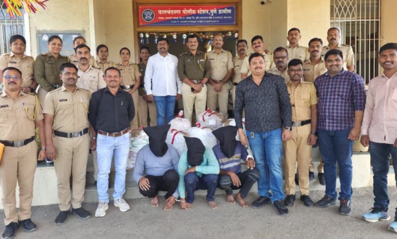 वालचंदनगर (ता. इंदापूर) : अंमली पदार्थ गांजाची आंतरराज्य वाहतूक करणाऱ्या टोळीवर वालचंदनगर पोलिसांनी धडक कारवाई करत तब्बल १०० किलो गांजा आणि चारचाकी वाहनासह एकूण २९ लाख ९८ हजार ५०० रुपयांचा मुद्देमाल जप्त केला आहे. या कारवाईत तीन आरोपींना अटक करण्यात आली असून, आणखी एका फरारी आरोपीस ताब्यात घेण्यात आले आहे. या प्रकरणातून गांजा वाहतुकीचे आंतरराज्य रॅकेट उघडकीस येण्याची शक्यता पोलिसांनी व्यक्त केली आहे.