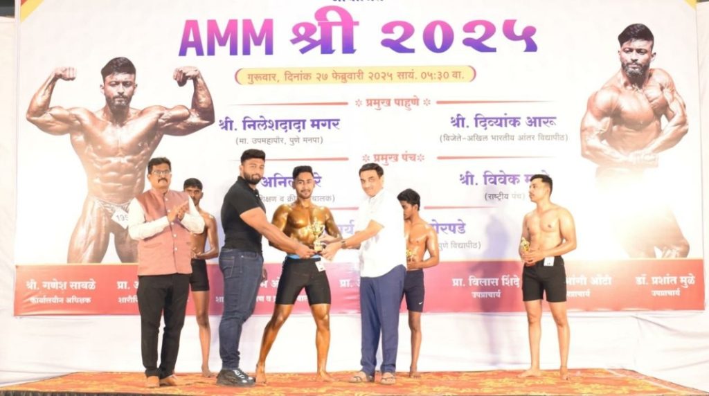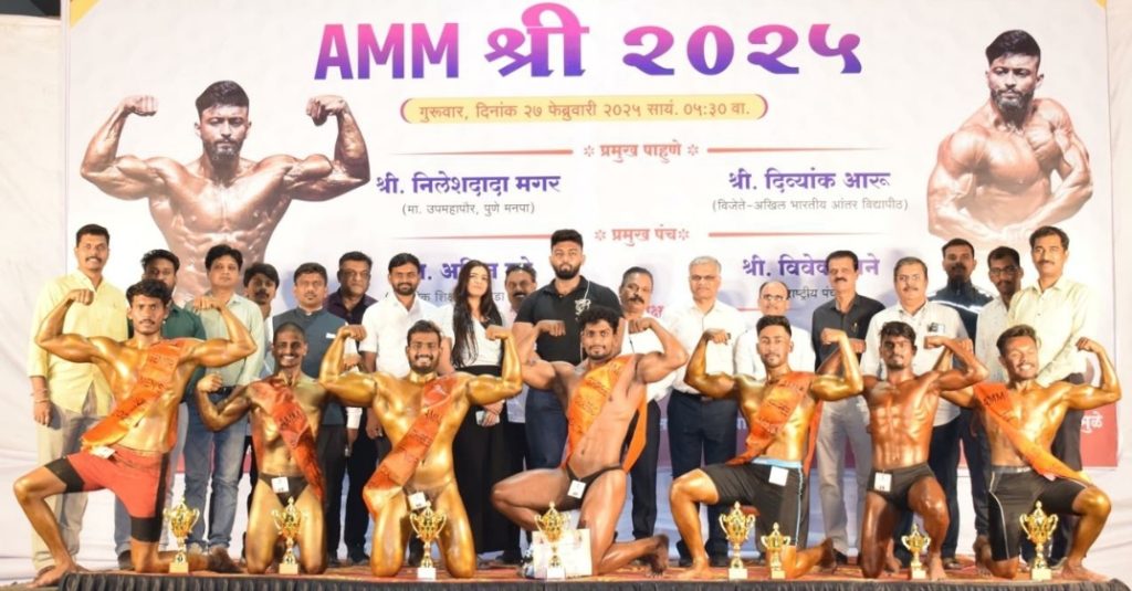 ‘एएमएम मेन्स फिजिक सीनियर श्री – २०२५’ वर रंजन धुमाळ याने नाव कोरले. ‘एएमएम मेन्स फिजिक ज्युनिअर श्री – २०२५’ चा मान आकाश घोरपडे याने मिळविला. राज्यभरातील महाविद्यालयीन शरीरसौष्ठवपटूसाठी असलेल्या खुल्या गटात ‘एएमएम क्लासिक हेल्थ क्लब श्री – २०२५’ चा किताब ऋषिकेश बिरेदार याने तर ‘एएमएम मेन्स फिजिक हेल्थ क्लब श्री – २०२५’ चा किताब अक्षय वाघ याने पटकाविला. ह्या सहा शरीरसौष्ठवपटूनी यंदाच्या ‘एएमएम श्री’ किताबावर आपली मोहोर उमटवली. स्पर्धेचे हे सलग पाचवे वर्ष आहे.
