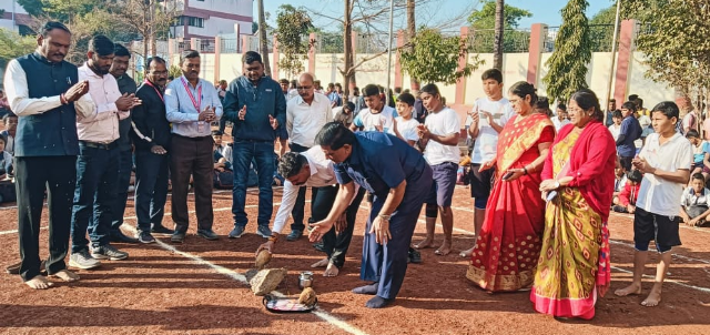 सर्वप्रथम प्रतिमा पूजन करण्यात आले. चित्रा हेंद्रे यांनी खेळ व क्रीडा विषयक रचलेलं गीत सादर केले. क्रीडाशिक्षक गणेश निचळे यांनी शिक्षक मनोगत व्यक्त केले. यावेळी आजीव सेवक अनिल मेमाणे, ज्युनियर कॉलेज विभागप्रमुख विजय सोनवणे, गजेंद्र शिंदे सर्व विद्यार्थी, शिक्षक व शिक्षकेतर कर्मचारी उपस्थित होते.