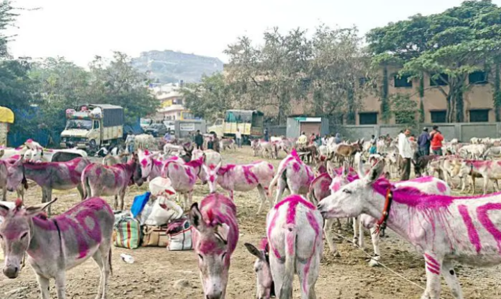 पुणे : महाराष्ट्राचे कुलदैवत असलेल्या खंडेरायाच्या जेजुरी नगरीमध्ये पौष पौर्णिमेनिमित्त पारंपरिक गाढव बाजार भरला आहे. दोन दिवसांपासून भरलेल्या गाढव बाजारामध्ये कोटय़वधी रुपयांची उलाढाल झाली. गावठी गाढवांना तीस ते चाळीस हजार रुपये, तर काठेवाडी गाढवाला एक लाख रुपयांचा भाव मिळाला.