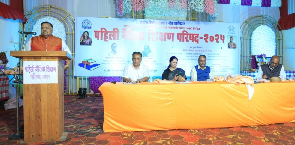 त्यानंतर डॉ श्रीपाल सबनीस आपल्या अध्यक्षीय भाषणात म्हणाले की संत ज्ञानेश्वरांच्या आळंदीत लहान बालकांचे लैंगिक शोषण करण्यात आलं. इयत्ता नववी मध्ये शिक्षण घेणारा विद्यार्थी आपल्याच वर्गातील मुलासोबत भांडण झाले म्हणून, बाथरूमच्या खिडकीचा काच काढून भर वर्गात दुसऱ्या विद्यार्थ्यांचा गळा चिरतो. पुणे शहरासारख्या ठिकाणी भर रस्त्यात एका महिलेला मारले गेलं, अनेक जण शेजारी उभे राहून बघतात टीव्हीवर एक दोन तीन असा घटनाक्रम दाखवला जातो, शेजारी उभे असणारे काहीही करत नाहीत केवळ बघ्याची भूमिका घेतात. मुलाला मोबाईल फोन घेऊन दिला नाही म्हणून मुलगा आईचा खून करतो. अशा अनेक घटना राज्यांमध्ये रोज घडत आहेत. हे काय चाललं आहे…? विद्यार्थिनी सोबत शिक्षकाचं लफडं कुटुंबात आई वडीलच एका कोपऱ्यात बसून मोबाईलवर रमलेले दिसतात. मुलगा एकीकडे मुलगी दुसरीकडे हे चित्र अतिशय वाईट आहे. नैतिक शिक्षण हे कुटुंबाकडून, शिक्षकाकडून, समाजाकडून मिळत असतं. यात सरकारची ही महत्त्वाची भूमिका असते पण याकडे सर्व स्तरातून दुर्लक्ष होत आहे. ही धोक्याची घंटा आहे आपण संतांचे विचार हरवलो आहोत की काय असा प्रश्न पडतो. यावर वेळीच जागृत होणं आवश्यक आहे आणि हा विचार नैतिक शिक्षण परिषदेच्या माध्यमातून राज्यात पहिल्यांदाच मांडला जात आहे ही आनंदाचे बाब आहे. एक परिषद घेऊन हा प्रश्न मिटणार नाही. या विचाराचं लोन महाराष्ट्रभर गेलं पाहिजे. यासाठी सर्व स्तरातून समाजाने पुढ येणं आवश्यक आहे.