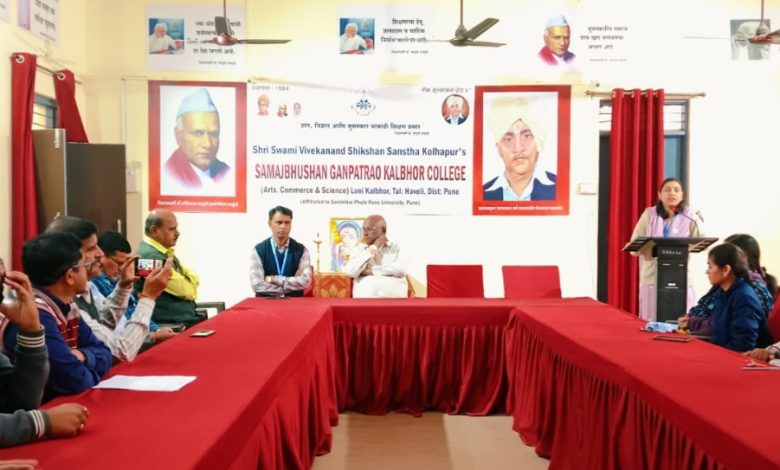 लोणी काळभोर (ता. हवेली) : क्रांतीज्योती सावित्रीबाई फुले यांच्या १९५ व्या जयंतीनिमित्त समाजभूषण गणपतराव काळभोर महाविद्यालयात बालिका दिनाचे औचित्य साधून प्रेरणादायी कार्यक्रमाचे आयोजन करण्यात आले. या कार्यक्रमात सावित्रीबाई फुले यांच्या कार्याचा सखोल आढावा घेत त्यांच्या सामाजिक योगदानाचा गौरव करण्यात आला.