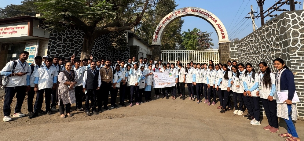 पुणे (हवेली) : (दि.२१) डिसेंबर २०२५ रोजी जे.एस. पी. एम. जयवंतराव सावंत इन्स्टिट्यूट ऑफ फार्मसी औषध निर्माणशास्त्र (डी. फार्मसी) प्रथम आणि व्दितीय वर्षाच्या विद्यार्थ्यांसाठी हॉस्पिटल व मेडिकल भेटीचे आयोजन करण्यात आले होते. भेट ही निसर्गोपचार आश्रम व प्राथमिक आरोग्य केंद्र उरुळी कांचन येथे घेण्यात आली. पुस्तकी ज्ञानासोबतच विद्यार्थ्यांना रुग्णालयातील कामकाजा विषयी ज्ञान मिळावे या उद्देशाने हा उपक्रम राबविण्यात आला.