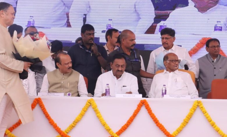 उपमुख्यमंत्री अजित पवारांनी शरद पवारांच्या बाजूला बसण्याचं टाळलं. आधी जी बैठक व्यवस्था करण्यात आली होती, त्या बैठक व्यवस्थेत अजित पवार हे शरद पवारांच्या शेजारी बसणार होते. मात्र, आता त्यांच्या जागी सहकारमंत्री बाबासाहेब पाटील बसले आहेत. बारामतीत कृषी प्रदर्शनामध्ये देखील हे दोन्ही एकत्रित एकाच व्यासपिठावरती आले होते. मात्र, त्यावेळी देखील शरद पवार आणि अजित पवार यांनी एकमेकांना इग्नोर केल्याचं पाहायला मिळालं होतं. आज देखील या कार्यक्रमामध्ये दोन्ही नेत्यांनी एकमेकांच्या बाजुला बसण्याचं टाळलं असल्याचं दिसून येत आहे.