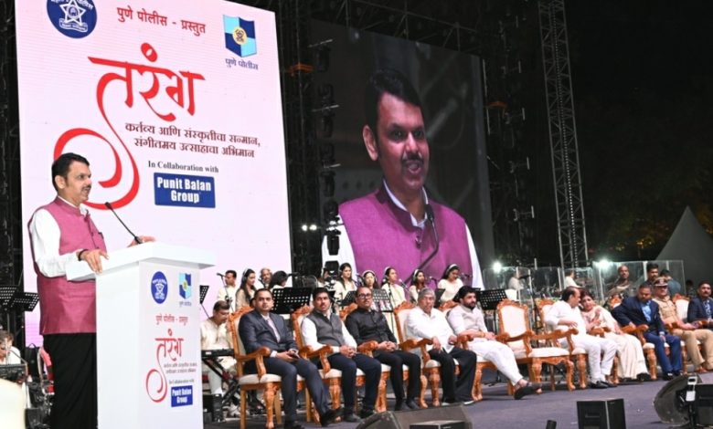 पुणे शहर पोलीस आयुक्तालयातर्फे शिवाजीनगर येथील पोलीस मुख्यालयात आयोजित ‘तरंग-२०२५’ कार्यक्रमाप्रसंगी ते बोलत होते. यावेळी उपमुख्यमंत्री तथा जिल्ह्याचे पालकमंत्री अजित पवार, केंद्रीय सहकार राज्यमंत्री मुरलीधर मोहोळ, उच्च व तंत्रशिक्षण मंत्री चंद्रकांतदादा पाटील, नगरविकास राज्यमंत्री माधुरी मिसाळ, खासदार सुनेत्रा पवार, सुनील तटकरे, आमदार अमित गोरखे, योगेश टिळेकर, विजय शिवतारे, सुनील कांबळे, सिद्धार्थ शिरोळे, सुनील शेळके, हेमंत रासने, राज्य महिला आयोगाच्या अध्यक्षा रुपाली चाकणकर, विभागीय आयुक्त डॉ. चंद्रकांत पुलकुंडवार, पुणे शहर पोलीस आयुक्त अमितेश कुमार, सहपोलीस आयुक्त रंजनकुमार शर्मा, जिल्हाधिकारी जितेंद्र डूडी, पुनीत बालन यांच्यासह विविध क्षेत्रातील मान्यवर आदी उपस्थित होते.