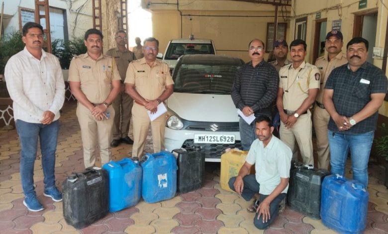 पोलीस सुत्रांनी दिलेल्या माहितीनुसार पोलीस अंमलदार राहुल कर्डिले हे नेहमीप्रमाणे लोणी काळभोर पोलीस ठाण्याच्या हद्दीत गुरुवारी पहाटे पाच वाजण्याच्या सुमारास गस्त घालत असताना त्यांना एका खबऱ्यामार्फत पुणे-सोलापूर महामार्गावरून अवैधरित्या गावठी हातभट्टी दारूची वाहतूक चारचाकी गाडीतून होणार आहे, अशी माहिती मिळाली होती.