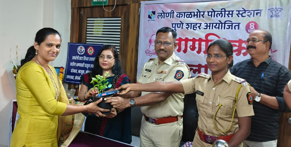 वरिष्ठ पोलीस निरीक्षक राजेंद्र पन्हाळे, पी एस आय रुपाली जाधव, पोलीस पाटील प्रियांका भिसे कदमवाकवस्ती, अॅड पिंकी राजगुरू यांच्या शुभहस्ते महिलांचा सन्मान करण्यात आला.वरिष्ठ पोलीस निरीक्षक राजेंद्र पन्हाळे यांनी महिलांना मार्गदर्शन करताना असे म्हणाले की १०९६ साली पोलीस खात्यात आल्यावर महिला पोलीसांची संख्या खुप कमी होती. त्यावेळी महिला या पोलीस खात्यात येण्यास तेवढ्या मानसिक दृष्ट्या सक्षम नव्हत्या महिला घराच्या बाहेर पडताना विचार करायच्या किंवा त्यांना पुरेसा पाठिंबा नव्हता. ती परिस्थिती तशी न राहता आज मात्र लोणी काळभोर पोलीस स्टेशनमध्ये जवळपास ३५ महिला कर्तव्य बजावत आहेत. लोणी काळभोर पोलीस ठाण्यात मला येऊन दिड महिना झालाय पण महिलांची कामगिरी जबरदस्त आहे. व पुढील काळात अशीच कामगिरी करतील अशी आशा बाळगतो. महिला पोलीस कर्मचारी उत्कृष्ट काम करत असल्याने कामाचा ताण कमी होत आहे. महिला पोलीस कर्मचारी यांचा अभिमान आहे.