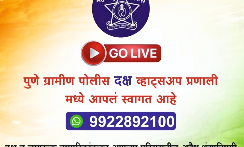 सध्याचे कालावधीत मोबाईल हा मनुष्याचे जीवनातील एक अविभाज्य घटक झालेला असून याच मोबाईल मधील सोशल मिडीयाचा वापर करून नागरीकांना आपली तक्रार करणे सुलभ होणार आहे. बऱ्याच सुजाण, जागरूक नागरीकांना आजुबाजूला अगर परिसरात असणारे अवैध धंद्यांविषयी तक्रार करावयाची असते, परंतु प्रत्यक्ष पोलीस स्टेशनला जावून तक्रार देण्यासाठी त्यांना शक्य होत नाही अगर भिती वाटत असते. त्यामुळे नागरीकांनी पोलीस स्टेशनला न जाता, आहे त्या ठिकाणाहून मोबाईल मधील ” व्हॉट्स अॅप ” या सोशल मिडीया अॅपचा वापर करून अवैध धंदे व्यवसाय विषयीची तक्रार/माहिती पुणे ग्रामीण पोलीसांना देणे सोयीचे व सुलभ व्हावे याकरीता पंकज देशमुख पोलीस अधीक्षक, पुणे ग्रामीण यांचे संकल्पनेतून ” व्हॉट्सअॅप दक्ष प्रणाली ” उपक्रमांतर्गत 9922892100 असा व्हॉट्सअॅप मोबाईल नंबर पुरविण्यात येत आहे.
