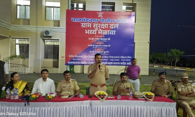 तसेच ज्या ग्रामसुरक्षा दलातील जवान यांनी विशेष कामगिरी केली की त्यांचा सन्मान पोलीस स्टेशन येथे केला जाईल तसेच ग्राम सुरक्षा दलामध्ये कर्तव्य बजावत असताना जे युवक यांना पोलीस भरती सैनिक भरती व इतर शासकीय नोकरीसाठी फायदा होईल असेही सांगितले. यावेळी प्रस्ताविक रतिलाल चौधर पोलीस उपनिरीक्षक यांनी केले तर आभार प्रदर्शन राजकुमार डुणगे सहाय्यक पोलीस निरीक्षक वालचंद नगर पोलीस स्टेशन यांनी मांडले यावेळी मिलिंद मिठ्ठा पल्ली पोलीस उपनिरीक्षक विजय टेळकीकर पोलीस स्टाफ ग्रामसुरक्षा दलातील सदस्य महिला दक्षता समिती पोलीस पाटील मोठ्या संख्येने उपस्थित होता.