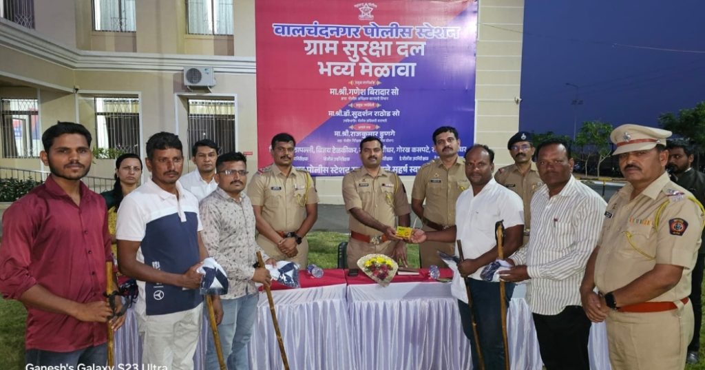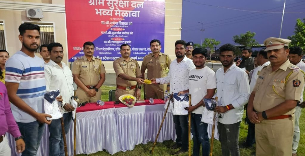 वालचंद नगर पोलीस स्टेशन अंतर्गत ३९ गावे १३ वाड्या वस्त्या असे एकूण ५२ गावांमधील ग्रामसुरक्षा दल सदस्य २३३ जवानांची गाव पातळीवर निवड करून त्यांना गणेश बिरादार अप्पर पोलीस अधीक्षक बारामती विभाग तसेच डॉक्टर सुदर्शन राठोड उपविभागीय पोलीस अधिकारी बारामती विभाग यांचे हस्ते ग्रामसुरक्षा दलातील सदस्य यांना ड्रेस लाठी शिट्टी या साहित्याचे वाटप करण्यात आले.
