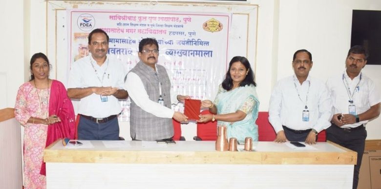 पुणे (हडपसर) : पुणे जिल्हा शिक्षण मंडळाच्या अण्णासाहेब मगर महाविद्यालयात सावित्रीबाई फुले पुणे विद्यापीठाच्या बहि:शाल शिक्षण मंडळाच्या संयुक्त विद्यमाने पुणे जिल्हा शिक्षण मंडळाचे भूतपूर्व अध्यक्ष सहकार महर्षी मामासाहेब मोहोळ यांच्या जयंतीचे औचित्य साधून यशवंतराव चव्हाण व्याख्यानमालेचे आयोजन करण्यात आले होते.