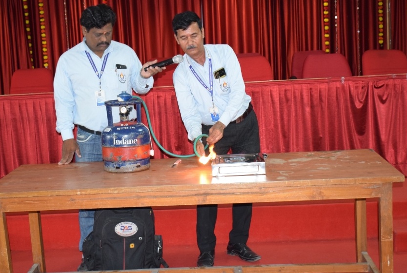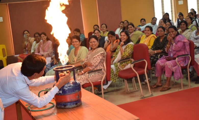 गॅस सिलेंडर सुरक्षितपणे कसे हाताळायचे, सिलेंडरचे रंग, सिलेंडर जोडायचे, गॅस लिक होणे, सर्वसाधारणपणे सिलेंडरमध्ये दोन कारणांमुळे स्फोट होतो. गॅस लिक झाल्याने शेगडीमधून सिलेंडरपर्यंत आग पोहोचते. दुसरं कारण म्हणजे सिलेंडरची एक्स्पायरी डेट झालेली असेल तर असा सिलेंडरसुद्धा स्फोटाचं कारण ठरू शकतो. अशा परिस्थितीत आग लागल्यास आग कशी विझवायची याबद्दल योगीराज ढेरे यांनी प्रशिक्षण दिले.