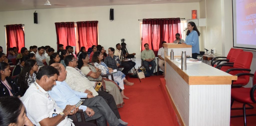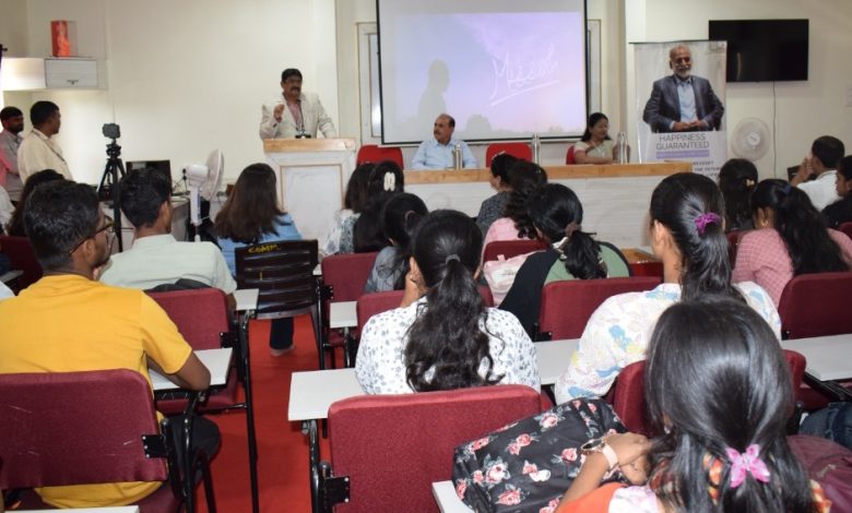 महाविद्यालयाचे प्राचार्य व सावित्रीबाई फुले पुणे विद्यापीठाच्या व्यवस्थापन परिषदेचे सदस्य डॉ. नितीन घोरपडे यांनी मन आणि भावना समजून घेण्याची सोपी पण सखोल अंतर्दृष्टी. ताणतणाव, चिंता आणि अंतर्गत संघर्ष कमी करण्याचे प्रभावी उपाय. वैयक्तिक, व्यावसायिक आणि कौटुंबिक जीवनात संतुलन राखण्याची क्षमता त्याचे महत्त्व विद्यार्थ्यांना सांगितले.