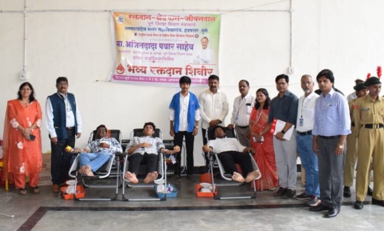 पुणे (हडपसर) : महाराष्ट्र राज्याचे उपमुख्यमंत्री आणि पुणे जिल्हा शिक्षण मंडळाचे अध्यक्ष अजित पवार यांच्या वाढदिवसानिमित्त अण्णासाहेब मगर महाविद्यालय हडपसर येथे राष्ट्रीय सेवा योजना व राष्ट्रीय छात्र सेना यांच्या वतीने रक्तदान शिबीर आयोजन करण्यात आले होते.