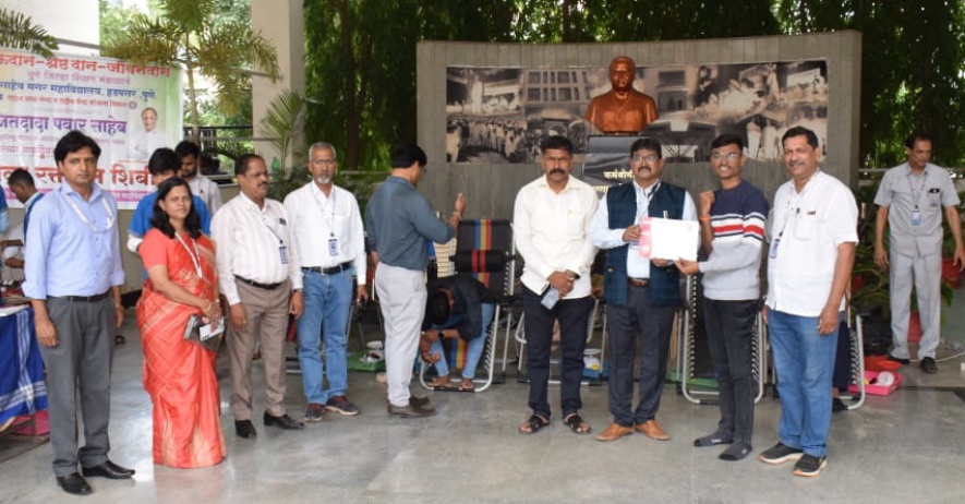 अक्षय ब्लड बॅंक हडपसर यांच्या वतीने रक्तदान शिबीर आयोजित करण्यात आले होते. यावेळी प्रमुख पाहुणे डॉ. शंतनू जगदाळे, आयर्न मॅन माजी नगरसेवक सुनील बनकर, विधी महाविद्यालयाच्या प्राचार्य डॉ. रंजना पाटील महाविद्यालयाचे प्राचार्य डॉ. नितीन घोरपडे, उपप्राचार्य प्रा. अनिल जगताप, रा.से.यो. जिल्हा समन्वयक डॉ. सविता कुलकर्णी, कार्यक्रम अधिकारी प्रा. ऋषिकेश मोरे, प्रा. नरसिंग पावडे एन.सी.सी ऑफिसर लेफ्टनंट डॉ. धिरज देशमुख, अक्षय ब्लड बँकेचे श्री योगेश बुरांडे उपस्थित होते.