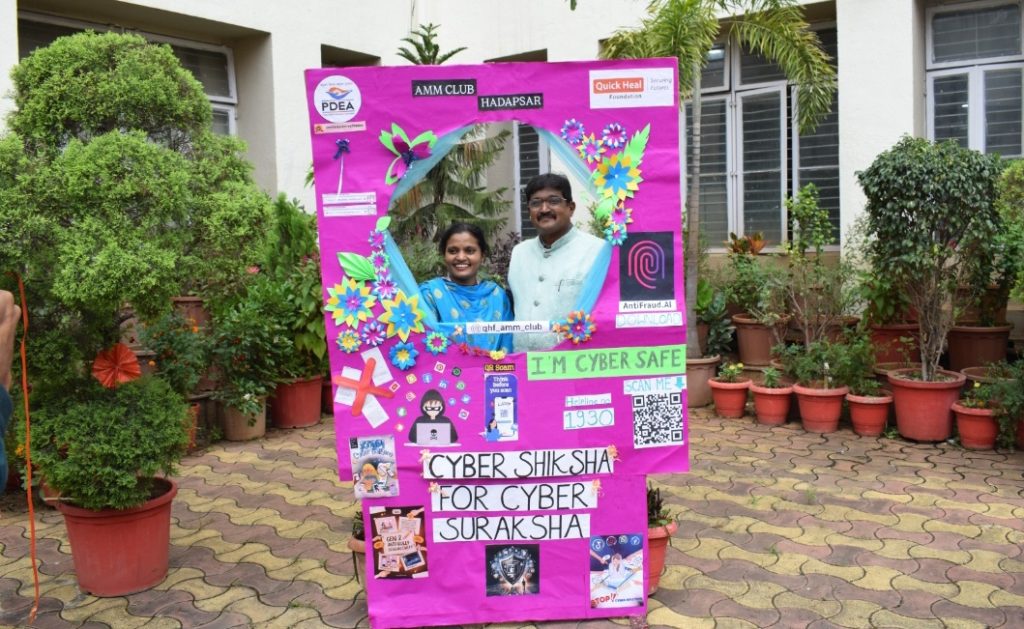 पुणे (हडपसर) : सध्याच्या डिजिटल युगात सायबर गुन्हेगारीचा वेगाने वाढता धोका लक्षात घेऊन अण्णासाहेब मगर महाविद्यालयात ‘सायबर सुरक्षा दिना’निमित्त आगळावेगळा उपक्रम राबवण्यात आला. महाविद्यालयातील ‘सायबर वॉरियर्स’ टीमने विद्यार्थ्यांमध्ये सायबर सुरक्षेबाबत जागरूकता निर्माण करण्यासाठी आकर्षक “Selfie Point” तयार केला, ज्यातून महत्त्वाचे संदेश पोहोचवण्यात आले.