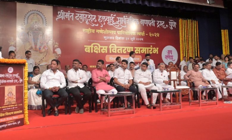 श्रीमंत दगडूशेठ हलवाई सार्वजनिक गणपती ट्रस्टच्यावतीने आयोजित ‘पिंपरी चिंचवड राष्ट्रीय गणेशोत्सव स्पर्धा २०२४’ बक्षीस वितरण समारंभात ते बोलत होते. चिंचवड येथील प्रा. रामकृष्ण मोरे प्रेक्षागृहात आयोजित या कार्यक्रमास आमदार हेमंत रासने, शंकर जगताप, श्रीमंती दगडूशेठ हलवाई सार्वजनिक गणपती ट्रस्टचे अध्यक्ष सुनील रासने, उपाध्यक्ष माणिक चव्हाण, पिंपरी चिंचवड राष्ट्रीय गणेशोत्सव स्पर्धेचे आयोजक विलास कामठे, बापूसाहेब धमाले, कैलास भांबुर्डेकर आदी याप्रसंगी उपस्थित होते.