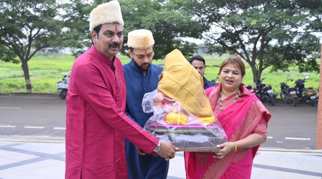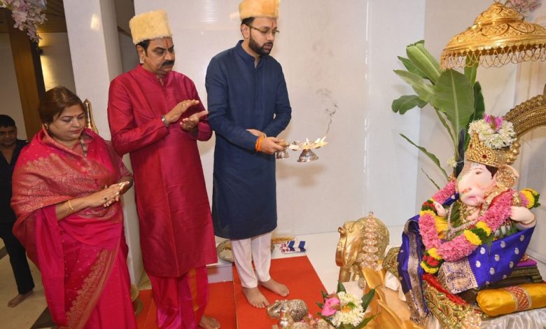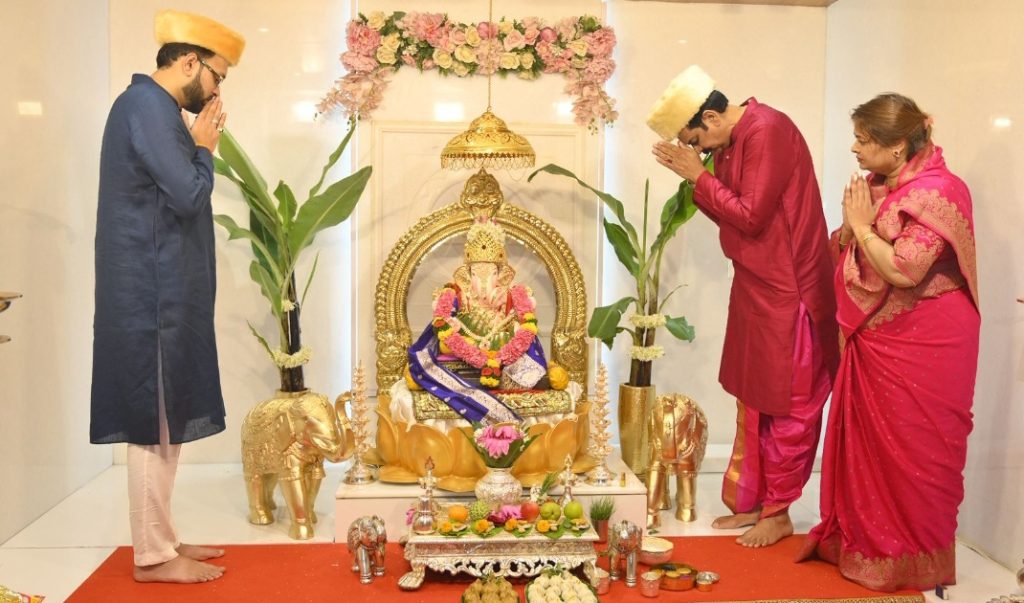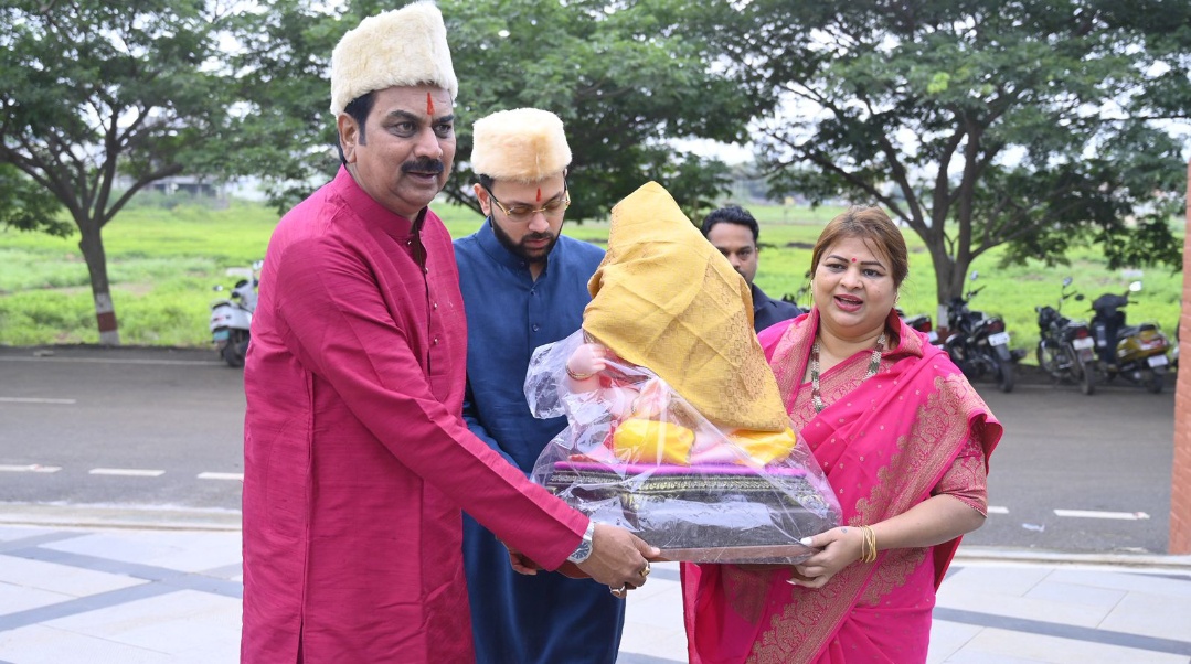 माजी मंत्री हर्षवर्धन पाटील, निराभिमा कारखान्याच्या चेअरमन सौ. भाग्यश्री पाटील तसेच युवा नेते राजवर्धन पाटील यांनी कुटुंबीयांसमवेत मंत्रोच्चारात मनोभावे गणेशपूजन केले. यावेळी गणेशोत्सवाच्या शुभेच्छा देताना पाटील म्हणाले, “श्री गणेशाचे आगमन हे आनंद, उत्साह आणि ऐक्याचा संदेश देणारे आहे. गणराया प्रत्येकाच्या आयुष्यात प्रगती, भरभराट आणि समाधान घेऊन येवो.”