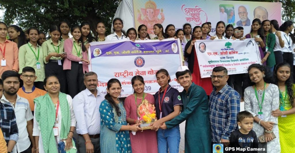 हडपसर (पुणे) : | ६ सप्टेंबर २०२५ रयत शिक्षण संस्थेचे एस. एम. जोशी कॉलेज, हडपसर येथे राष्ट्रीय सेवा योजना विभाग आणि भूगोलशास्त्र विभाग यांच्या संयुक्त विद्यमाने पर्यावरणपूरक गणेशमूर्ती विसर्जन व निर्माल्य संकलन उपक्रम राबविण्यात आला. महाविद्यालयाचे प्राचार्य डॉ. सुरेश साळुंखे यांच्या मार्गदर्शनाखाली हा उपक्रम पार पडला.