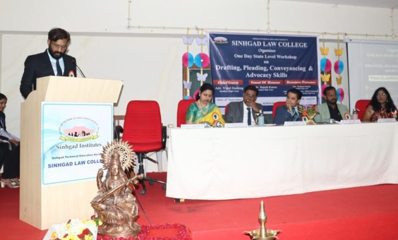 पुणे : वकिली क्षेत्रात यशस्वी होण्यासाठी आवश्यक असलेले कायदेशीर लेखनकौशल्य, अर्ज व निवेदन तयार करण्याचे तंत्र, तसेच न्यायालयीन सादरीकरणातील आत्मविश्वास यांचा सर्वंकष विकास व्हावा, या उद्देशाने सिंहगड विधी महाविद्यालयात राज्यस्तरीय कार्यशाळेचे आयोजन करण्यात आले. काल दि. 16 सप्टेंबर रोजी झालेल्या या कार्यशाळेत “ड्राफ्टिंग, प्लीडिंग, कन्व्हेसींग व ॲडव्होकेसी स्किल” या विषयावर विद्यार्थ्यांना मार्गदर्शन करण्यात आले.
