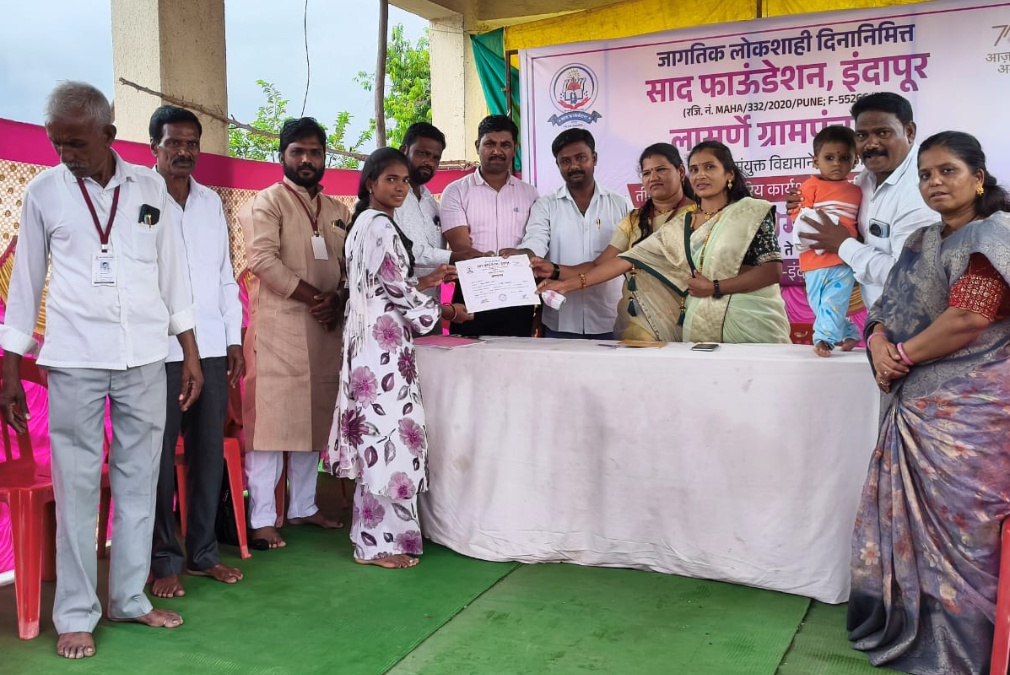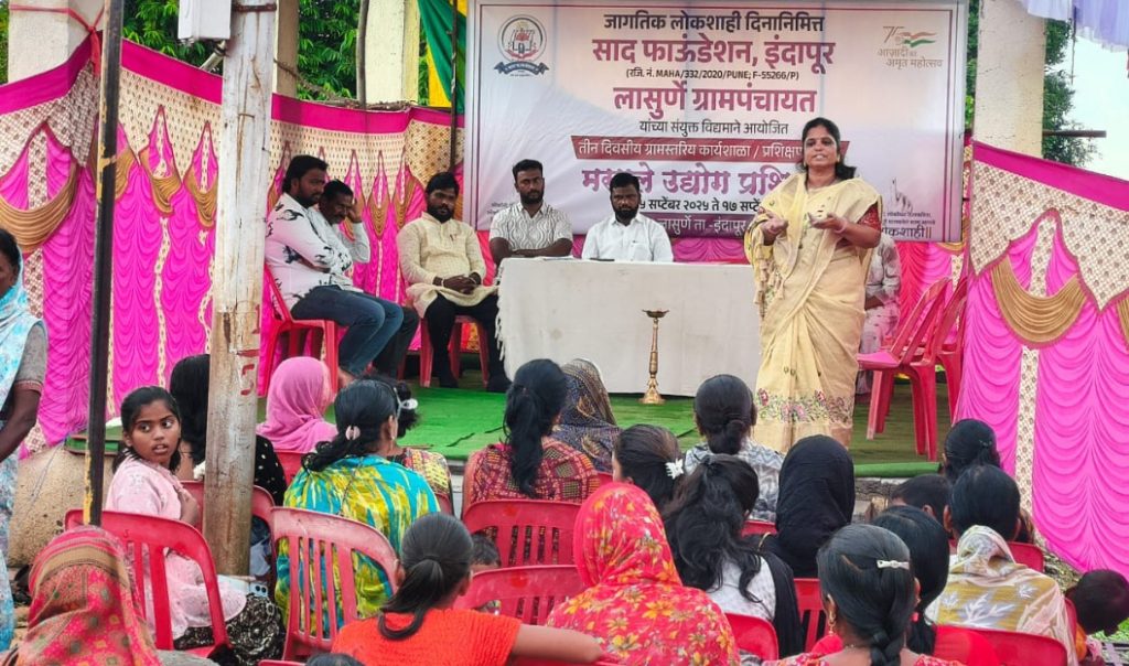 लासुर्णे ग्रामपंचायत व साद फाउंडेशन, इंदापूर चॅरिटेबल ट्रस्ट यांच्या संयुक्त विद्यमाने जागतिक लोकशाही दिनाचे औचित्य साधून १५ ते १७ सप्टेंबर दरम्यान तीन दिवसीय ग्रामस्तरीय कार्यशाळेचे आयोजन करण्यात आले होते. या कार्यशाळेच्या उद्घाटनप्रसंगी सरपंच पाटील बोलत होते.