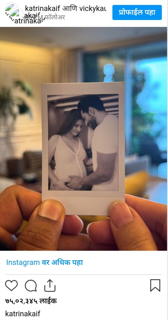 मुंबई : बॉलीवुडच्या प्रसिद्ध जोडप्यांपैकी कटरिना कैफ आणि विकी कौशल लवकरच आई-बाबा होणार आहेत. कटरिनाने तिच्या इन्स्टाग्राम अकाऊंटवर बेबी बंपसह गोंडस फोटो शेअर करून चाहत्यांना प्रेग्नन्सीची आनंदाची बातमी दिली आहे.