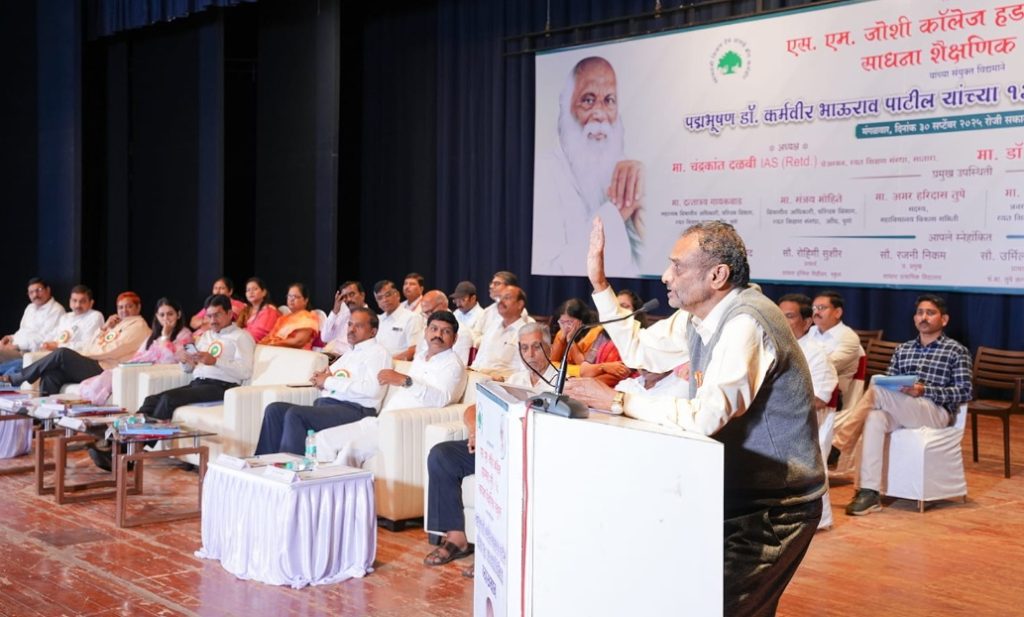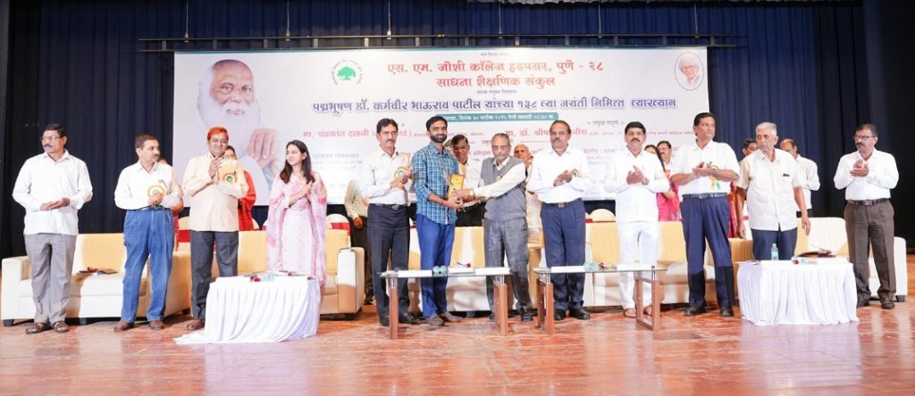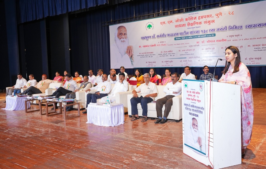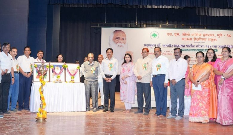 हडपसर (पुणे) : दि.३० रयत शिक्षण संस्थेचे एस. एम. जोशी कॉलेज व साधना शैक्षणिक संकुल यांच्या संयुक्त विद्यमाने पद्मभूषण डॉ. कर्मवीर भाऊराव पाटील यांच्या १३८ व्या जयंतीनिमित्त व्याख्यानाचे आयोजन करण्यात आले.