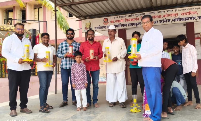 यावेळी यावेळी विविध विकास सहकारी सोसायटीचे माजी चेअरमन विठ्ठल काळभोर, ग्रीन फाउंडेशन संस्थापक अध्यक्ष अमित जगताप, ग्रीन तालुका अध्यक्ष गणेश काळभोर, शिवभक्त मुरलीधर गुजर, पैलवान नवनाथ काळभोर व शाळेतील विद्यार्थी उपस्थित होते. सद्यस्थितीत इमारती, घरे, फ्लॅटच्या गॅलरी, लोखंडी पाईप, खिडक्या, पडक्या इमारती व पार्किंग अशा मिळेल त्या ठिकाणी पक्षी घरटे बांधून आपले अस्तित्व टिकविण्यासाठी झगडताना दिसत आहेत. पक्षांच्या विणीचा हंगाम सुरू होत आहे म्हणून ते घरटे बांधण्यासाठी सुरक्षित जागा शोधताना दिसत आहेत. हे लक्षात येताच ग्रीन फौंडेशन महाराष्ट्र राज्याचे संस्थापक अध्यक्ष अमित जगताप यांनी त्यांच्या सुरक्षित निवार्‍याची व्यवस्था करण्याचे ठरविले. याबाबत त्यांनी अजित साळुंखे यांचेशी चर्चा केली.