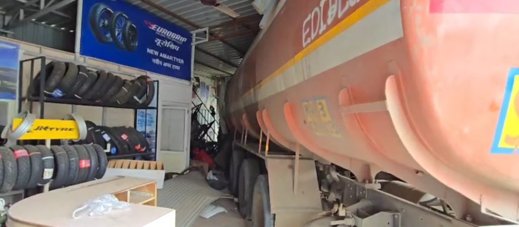घटना: ५ ऑक्टोबर रोजी पहाटे ५:२० वाजता आरोपीने भरधाव टँकर चालविताना नियंत्रण सुटल्याने न्यू अमर टायर दुकानासमोर उभ्या असलेल्या मारुती आल्टो कारला धडक दिली. या धडकेत टँकर दुकानात शिरून आत पार्क केलेली मारुती 800 कार, यामाहा मोटारसायकल, तसेच टायर व दुकानातील साहित्याचे मोठे नुकसान झाले. चालकास किरकोळ दुखापत झाली.