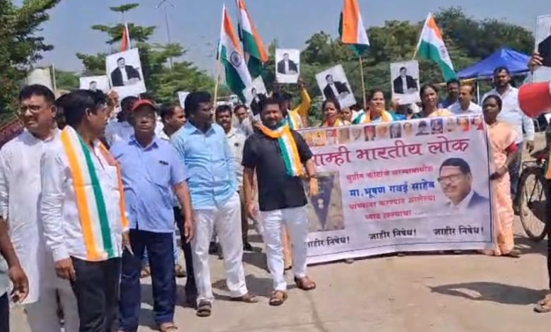 लोणी काळभोर, (हवेली) : देशाच्या सर्वोच्च न्यायालयाचे सरन्यायाधीश मा. बी. आर. गवई यांच्यावर वकील राकेश किशोर तिवारी या व्यक्तीने केलेल्या हल्ल्याच्या निषेधार्थ आज “संविधान बचाव आंदोलन”चे जोरदार आयोजन करण्यात आले. हे आंदोलन लोणी स्टेशन येथून सुरू होऊन लोणी काळभोर पोलीस स्टेशनपर्यंत निघाले.