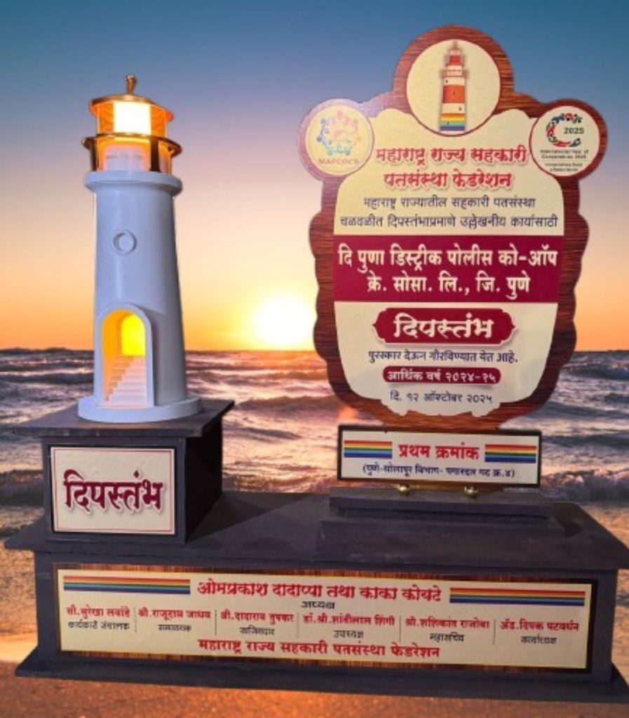 पुणे : स्वातंत्र्यपूर्व काळात स्थापन झालेल्या दि. पूना डिस्ट्रिक्ट पोलीस को-ऑपरेटिव्ह क्रेडिट सोसायटी लिमिटेड पुणे-११ या नामवंत संस्थेला, महाराष्ट्र राज्य सहकारी पतसंस्था फेडरेशनतर्फे आयोजित “राज्यस्तरीय दीपस्तंभ पुरस्कार २०२४-२५” प्रथम क्रमांकाने प्राप्त झाला आहे.