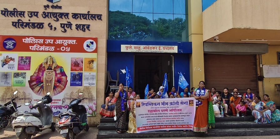 या घटनेच्या निषेधार्थ रिपब्लिकन भीम क्रांती सेना अंतर्गत दलित बहुजन सामाजिक सेवा संस्थांच्या वतीने हल्लाबोल धरणे आंदोलन घेण्यात आले. या आंदोलनासाठी उपस्थित मान्यवरांमध्ये सामाजिक कार्यकर्ते संजय भालेराव, मातंग एकता आंदोलन पुणे शहर अध्यक्ष दिगंबर जोगदंड, रिपब्लिकन भीम क्रांती सेनेचे अध्यक्ष महेंद्र जैन जांगडे, अनिता गोरे, कौशल्या इजगज, कविताताई वाघमारे, मंगल सूर्यवंशी, सारिका साळवी, ज्योती चौव्हाण, अंजना देडे, सुनिता केदारी तसेच घरेलू कामगार प्रतिनिधी रसिका कुंचले यांची उपस्थिती होती.