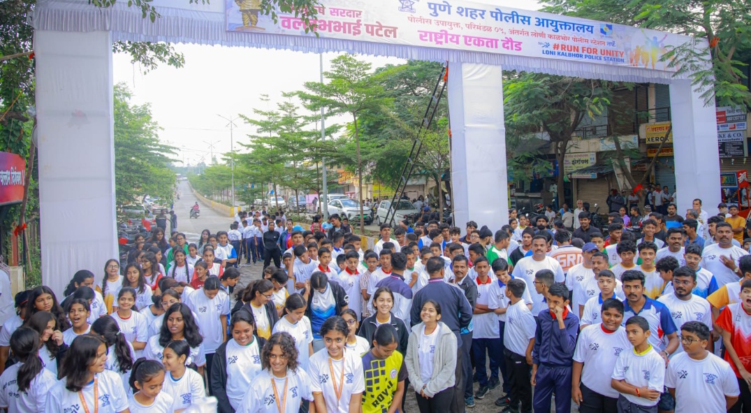 कदमवाकवस्ती (ता. हवेली) : लोहपुरुष सरदार वल्लभभाई पटेल यांच्या १५० व्या जयंतीनिमित्त आणि राष्ट्रीय एकता दिनानिमित्त लोणी काळभोर पोलीस ठाण्याच्या वतीने “एकता दौड”चे आयोजन करण्यात आले. या ३ किलोमीटरच्या एकता दौडीत पुरुष गटात गोविंद खलसे तर महिला गटात भाग्यश्री घुले यांनी प्रथम क्रमांक पटकावला.