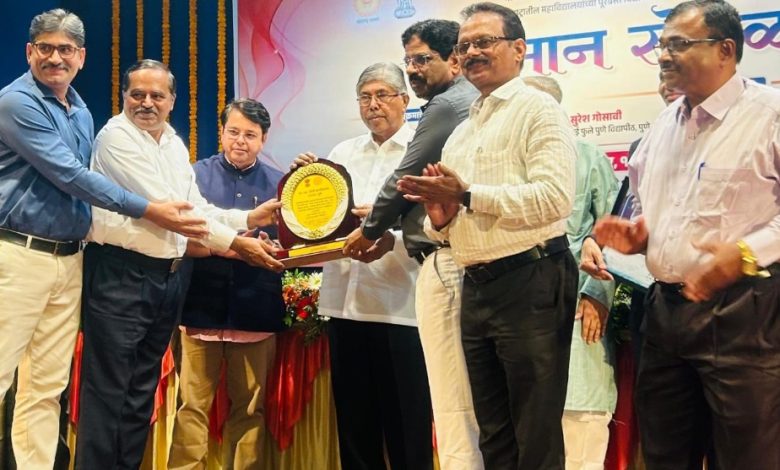 हडपसर (पुणे) : सोलापूरच्या माढा तालुक्यातील पूरग्रस्तांसाठी रयत शिक्षण संस्थेचे एस. एम. जोशी महाविद्यालय, हडपसर यांनी राबवलेल्या मदतकार्याची राज्य सरकारने दखल घेत पुण्यात महाविद्यालयाचा विशेष सन्मान केला. उच्च व तंत्र शिक्षणमंत्री चंद्रकांत पाटील आणि संचालक डॉ. शैलेंद्र देवळाणकर यांच्या हस्ते हा गौरव प्रदान करण्यात आला.
