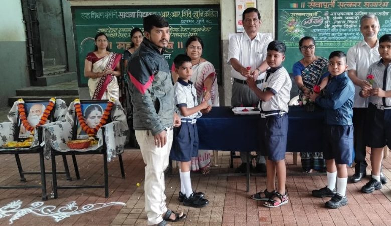 साधना विद्यालयात गुलाबपुष्प देऊन विद्यार्थ्यांचे स्वागत…